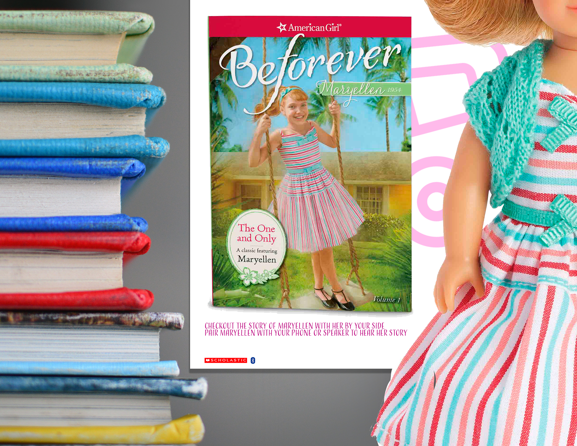 To give children access to the American Girl Doll experience, with a partnership with Scholastic, select dolls will be made available for checkout, users can pair their mobile or tablet via Bluetooth to the doll, and have them play an audiobook version of their tale.